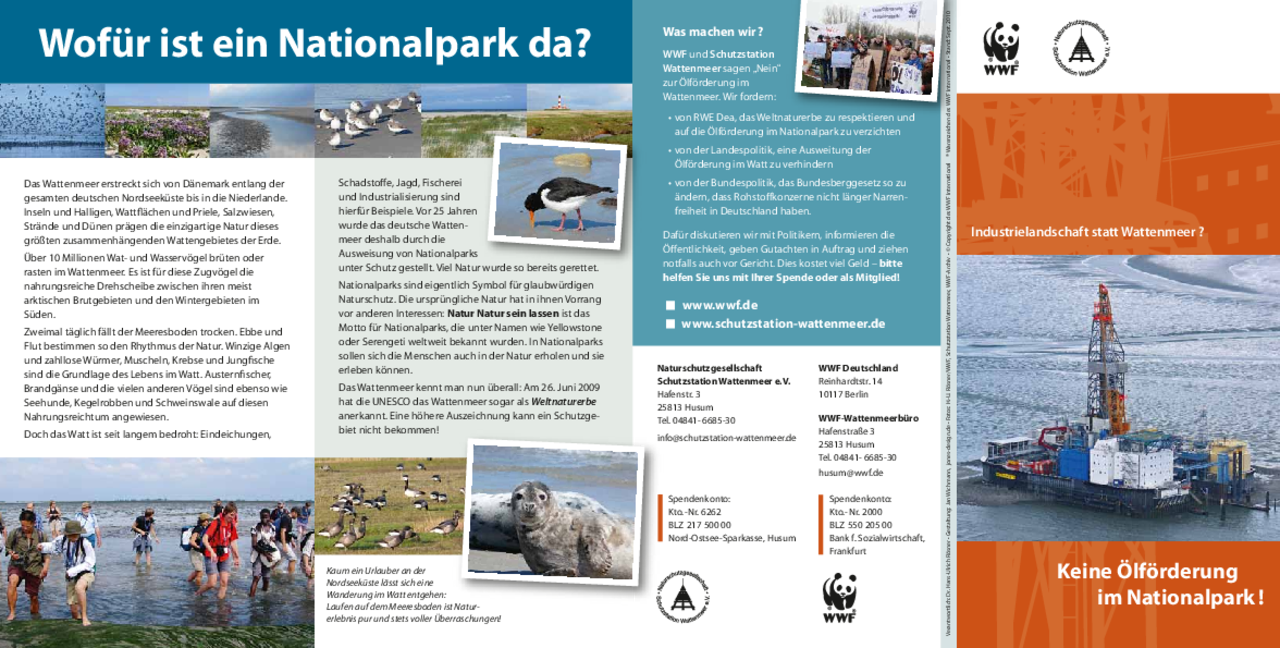 Die Schutzstation Wattenmeer hat mit zahlreichen öffentlichen Aktionen immer wieder auf die Unvereinbarkeit der Ölförderung mit den Anforderungen eines Nationalparks und Weltnaturerbegebiets hingewiesen. Zugleich setzen wir uns in Gremien wie den Nationalpark-Kuratorien und inzwischen auch vor Gericht für ein Ende der Exploration ein.