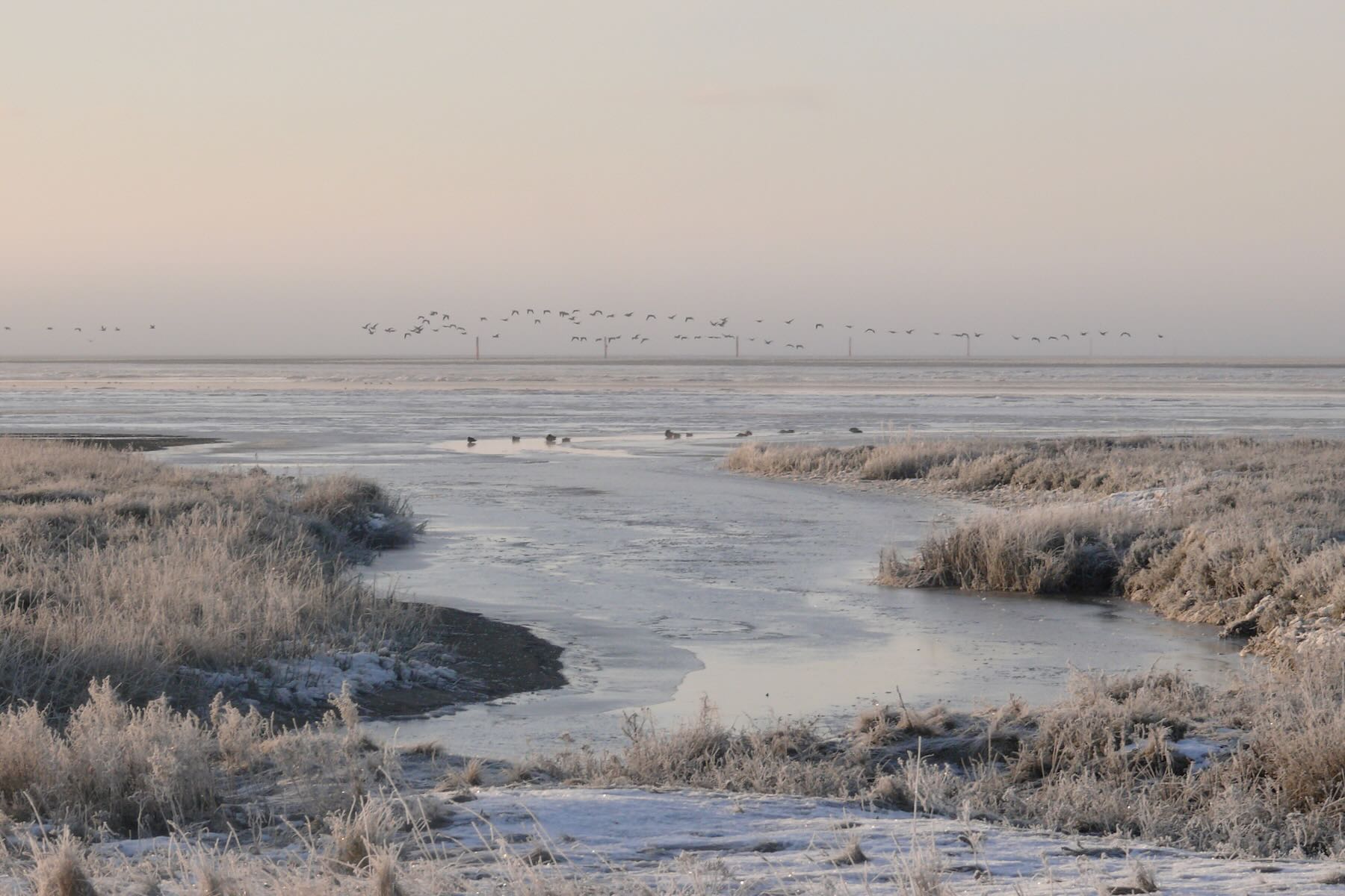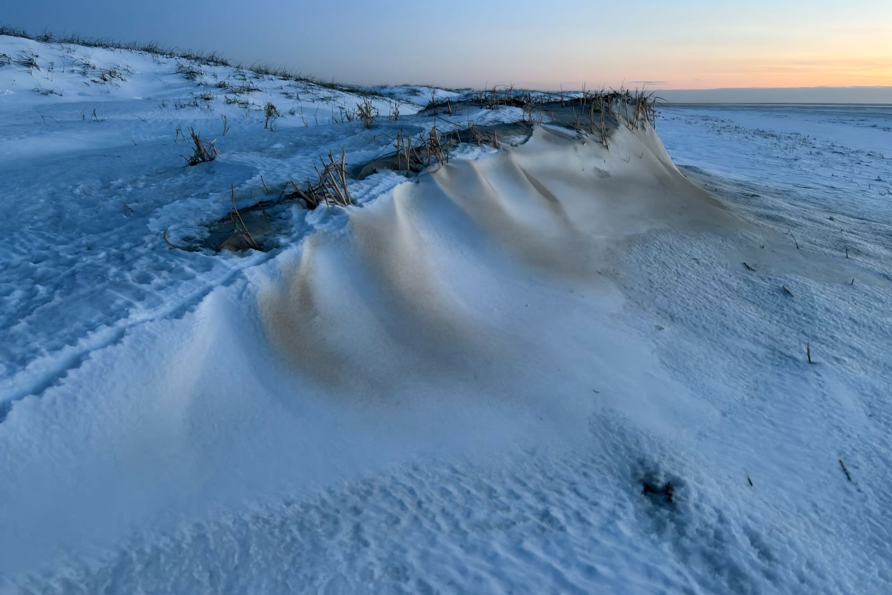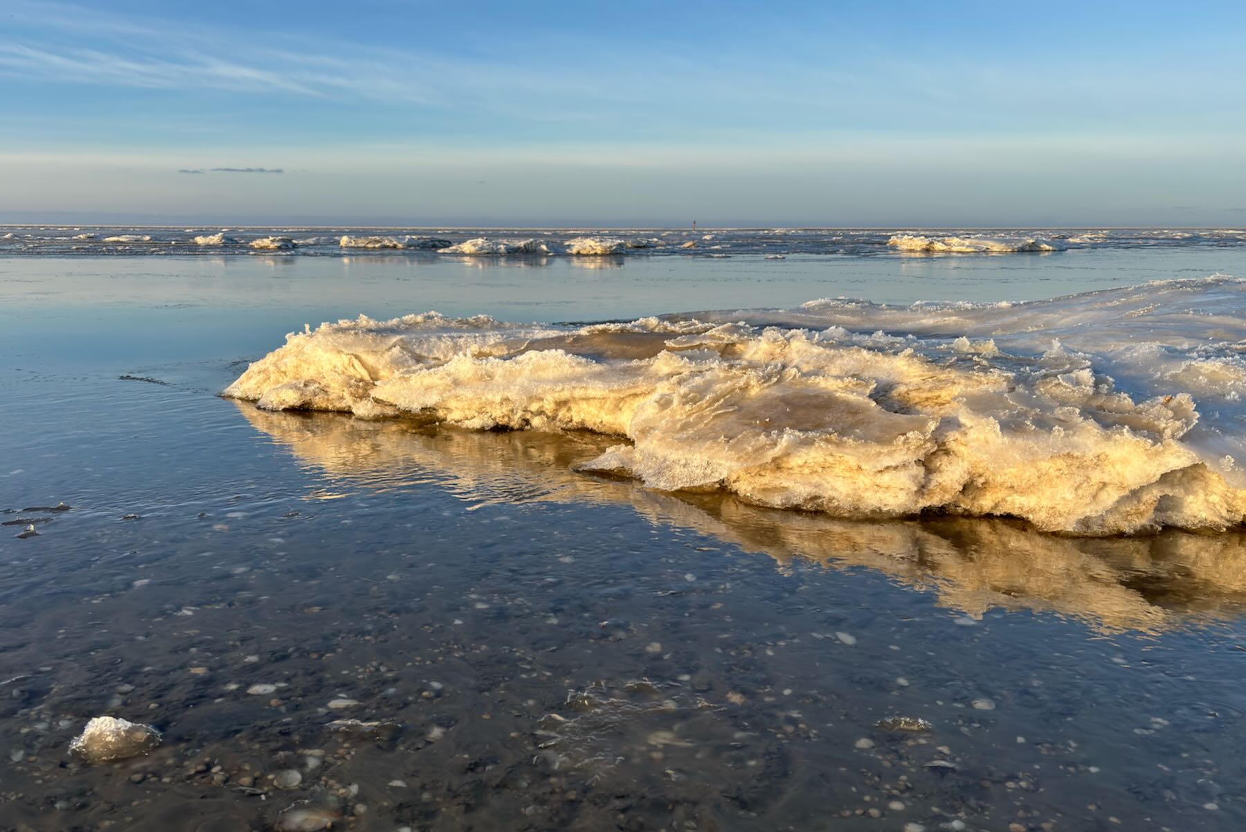 Schneefall und einige Frostnächte hatten das Wattenmeer schon Anfang der Woche winterlich wirken lassen. In der vergangenen Nacht sanken die Temperaturen vor St. Peter-Ording allerdings auf minus 11 Grad. Zu Schneeverwehungen in den Salzwiesen kamen nun innerhalb weniger Stunden große Eisflächen auf dem Watt, die von den Gezeiten bereits zu dickeren Schollen zusammengeschoben wurden. Zugleich zog immer wieder Nebel auf, der auch Gräser und andere Pflanzen mit glitzerndem Raureif schimmern ließ.