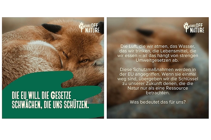 Daher hat das Bündnis #HandsOffNature in Allianz mit etwa 100 weiteren Organisationen im Februar eine neue europaweite Petition gestartet, die am 26.3.26 schon über 373.000 Menschen unterzeichnet haben.