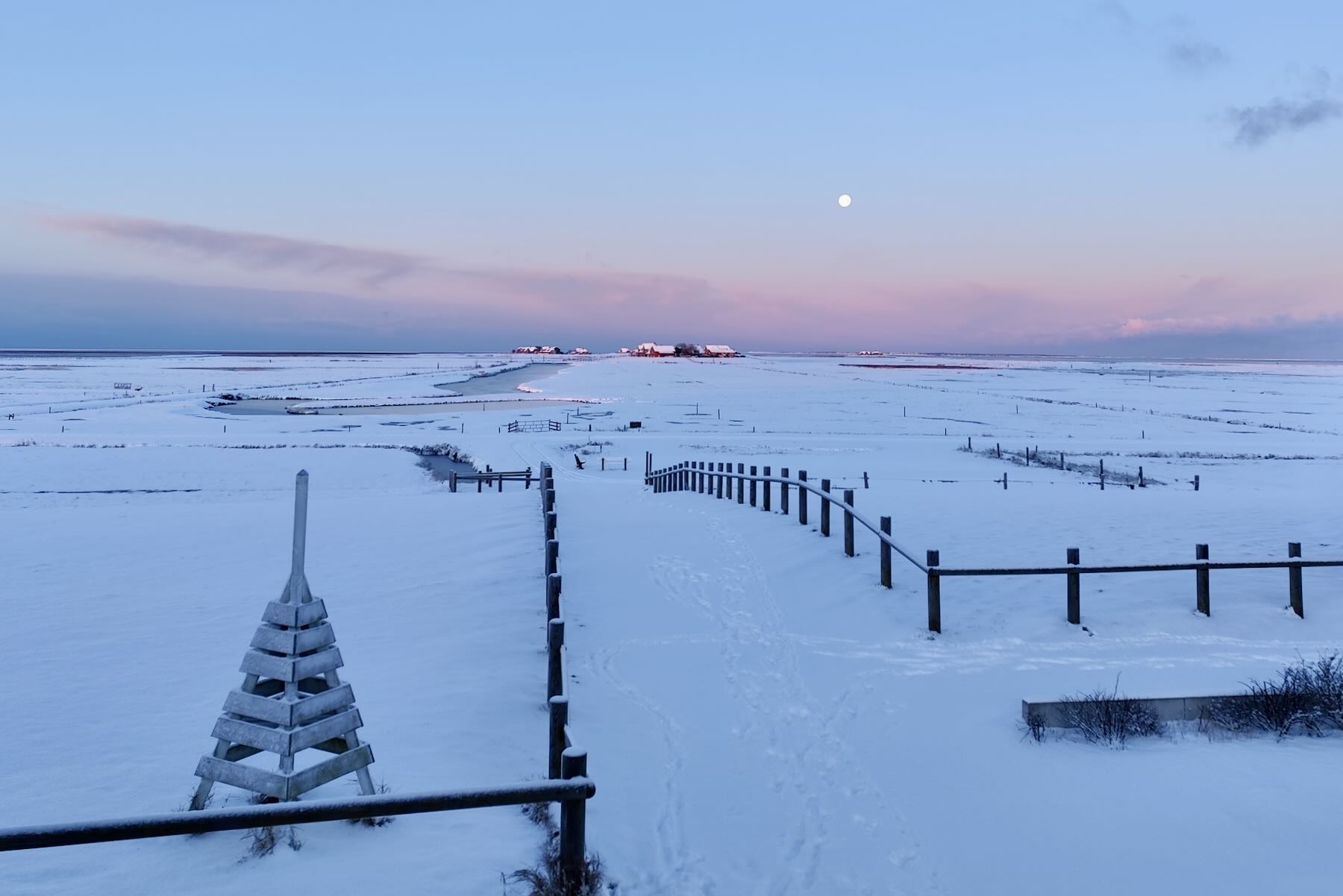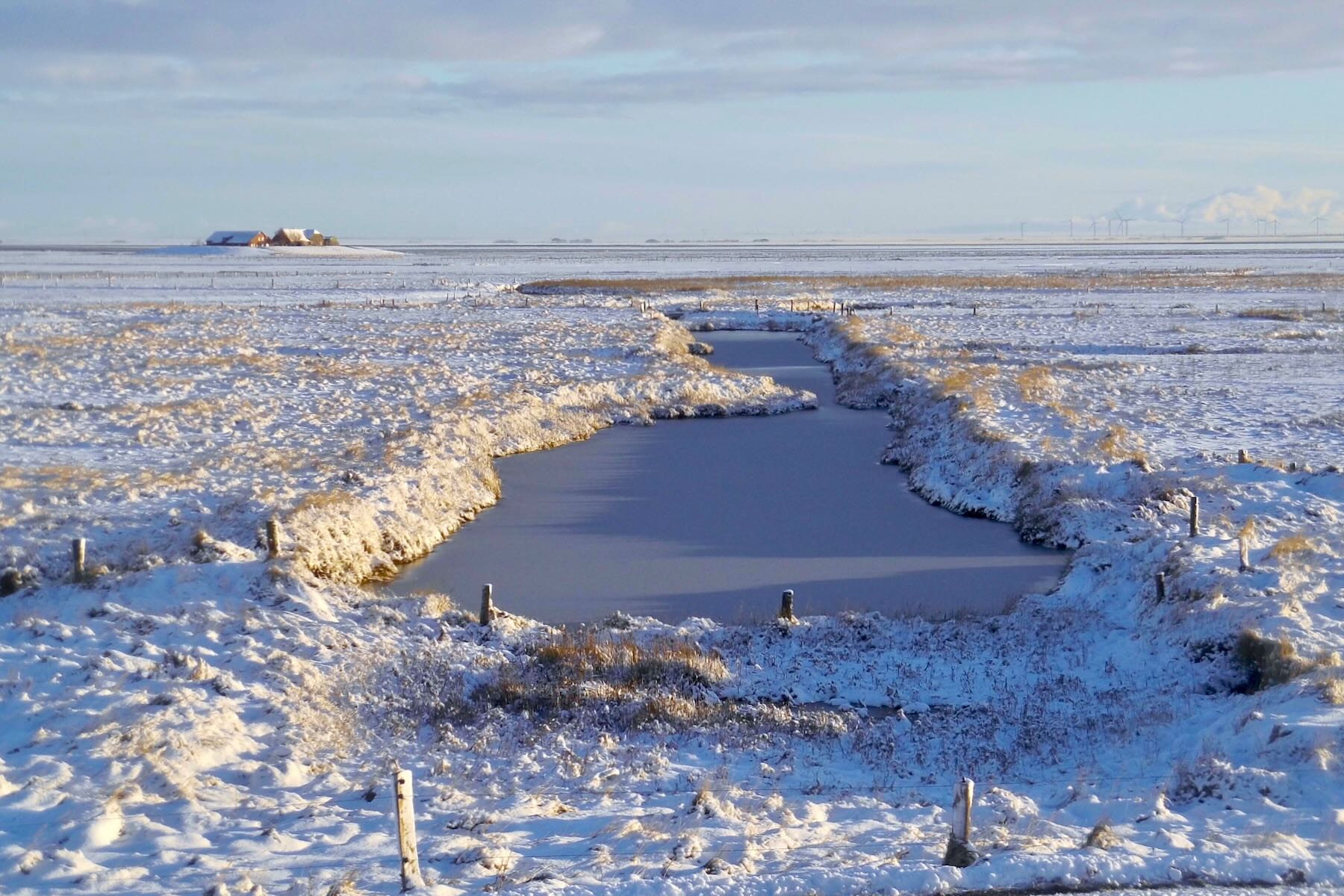 Direkt nach den Sturmtagen Anfang Januar wurde es deutlich kühler. Teilweise fiel an der Westküste dichter Schnee, der mancherorts vom Wind über das flache Land geweht wurde.