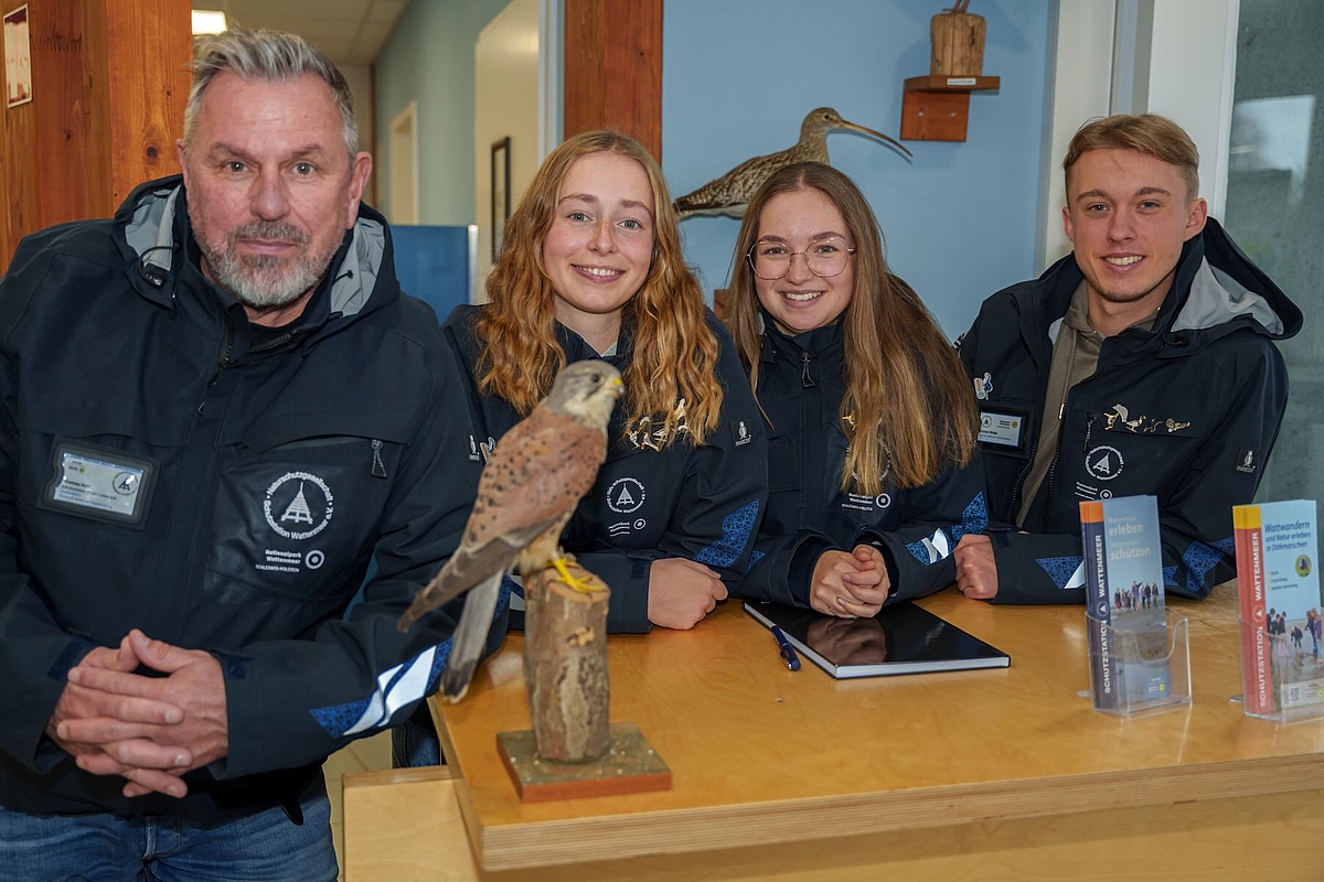 Das Team der Nationalpark-Station 'Wattwurm' besteht aus Leiter Thomas Hief und drei jungen Menschen im Bundesfreiwilligendienst (BFD) oder Freiwilligen Ökologischen Jahr. Die Freiwilligen sind in die Betreuung der Naturschutzgebiete eingebunden, erfüllen Aufgaben der Umweltbeobachtung und informieren zugleich in der Ausstellung und in Veranstaltungen über den Lebensraum in und um den Meldorfer Speicherkoog.