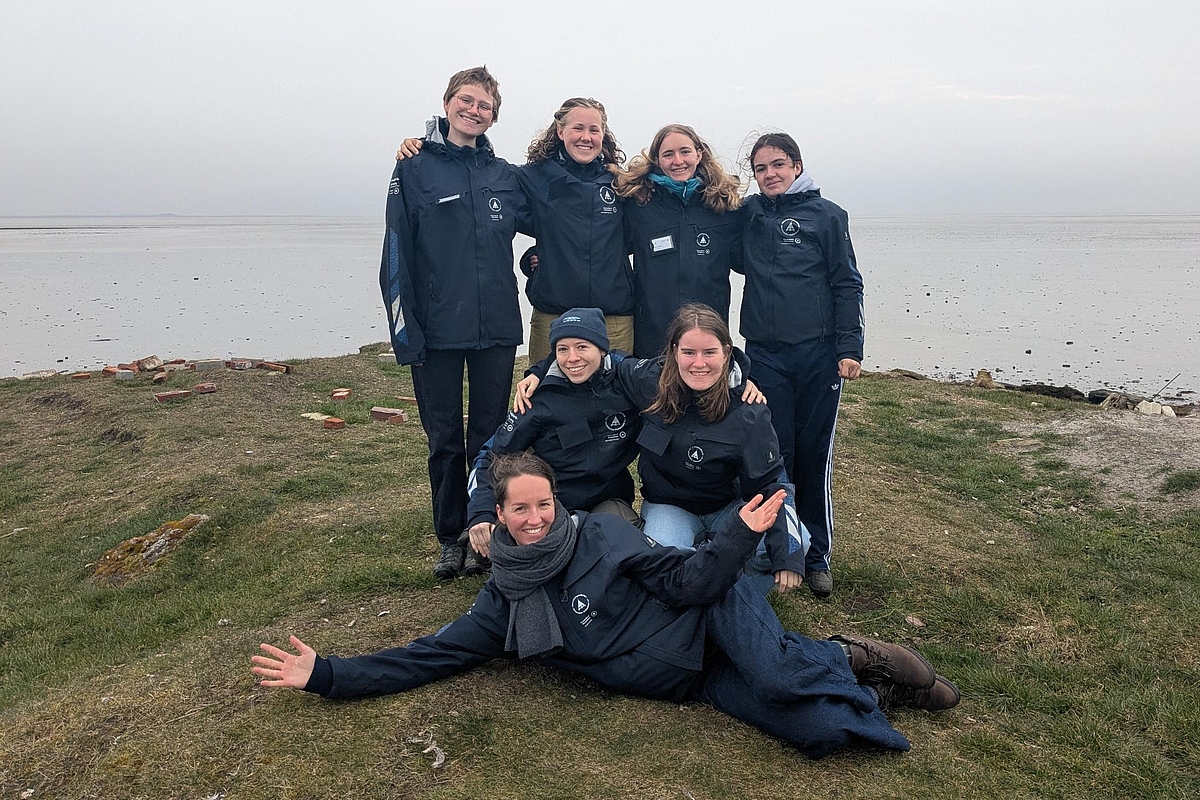 Das Stationsteam von Rantum auf Sylt im April 2026 mit Kaja Kamp, Hanna zur Linde, Cilia Sulyok und Marta Fink (von links nach rechts, hintere Reihe) sowie Ann-Kathrin Jung, Olga Kischewski und Stationsleiterin Sally Schadendorf (von links nach rechts).